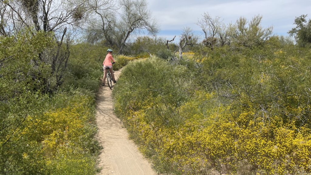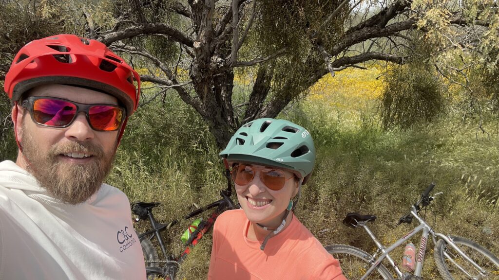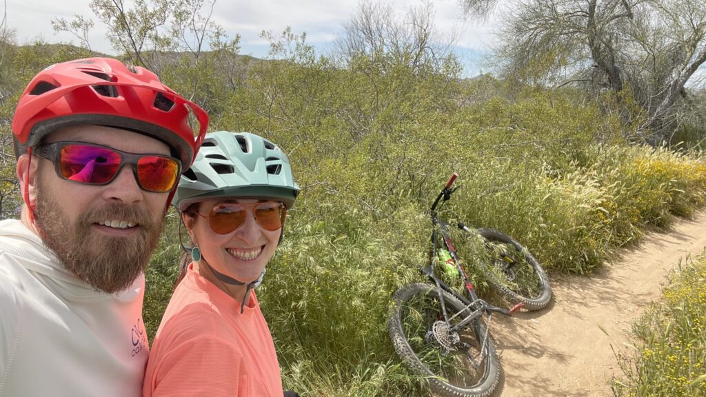 Celebrating 8 years of marriage with an 8 mile ride at Apache Wash. I think the total distance was just under 7 miles. Our marriage outran our riding ability. It always will.